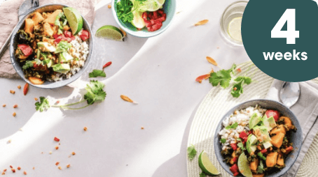 This 4-week program is ideal for those with a busy lifestyle and little time for cooking and meal prep. The plans feature a range of recipes that can be made in less than 25 minutes, using a variety of grains, fruit and veg, protein and healthy fats. We feature breakfasts that can be made the night before, lunch ideas for prepping before the day begins and snacks that can be batch baked.